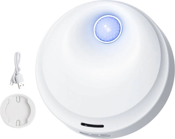 Doboz tartalma: okos szagelnyelő, USB‑C kábel, felhasználói kézikönyv, kétoldalas ragasztóval ellátott lap.