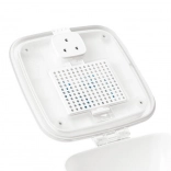 A kifinomult tömítési rendszer, az automatikus kiömlőnyílás-zárás és a szárítóanyaggal ellátott tartály frissen és ropogósan tartja a tápot, miközben a kialakítás megelőzi az elakadást (kb. 16 mm-es tápszemig). A 7°-os ergonomikus dőlésszögű tál kényelmes etetést biztosít, és minden alkatrész könnyen tisztítható. Az áramellátás adapterrel vagy 4× AA elemmel biztosított, így áramszünet esetén is nyugodt lehet.