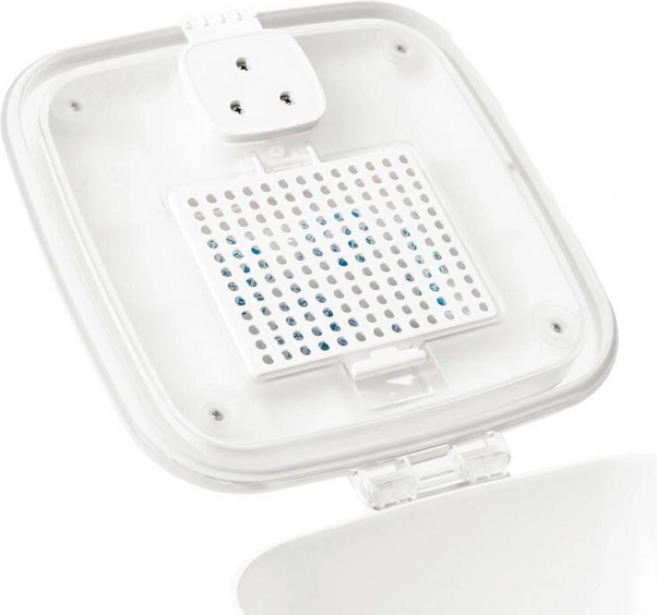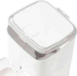 A maximális frissesség érdekében szilikon tömítéseket, automatikus légnyílás-zárást és páramentesítőt kombinál. A kialakítás megakadályozza a 16 mm-ig terjedő szemcsék elakadását, a 7°-os dőlésszögű tál pedig megkönnyíti a táplálék felvételét. Az etető hálózatról és 4× AA elemmel is működtethető, és offline adagolást is biztosít áramszünet vagy internetkimaradás esetén.