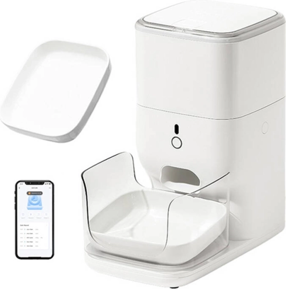 Az etető folyamatosan figyeli a tál állapotát, és ~10 g szint alatt pótolja a tápot. Az alkalmazásban beállíthatja az etetési időpontokat és az adagok számát – a táplálás mindig rendszeres és személyre szabott lesz.
