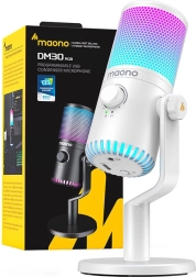 A MAONO DM30 RGB kompakt asztali mikrofon, amely a professzionális felvételi minőséget vonzó dizájnnal ötvözi. 7 színt és 5 RGB átmenetet kínál, így tökéletesen illeszkedik gamer szettedhez, a kardioid felvételi mód pedig megbízhatóan csökkenti a környezeti zajt és kiemeli a hangodat.