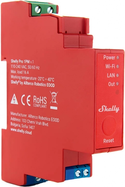 A Shelly Pro 1PM egy intelligens relé WiFi és LAN kapcsolódási lehetőséggel, amely alkalmas otthonok és épületek intelligens automatizálására. Beépített fogyasztáskövető mérővel van ellátva, amely lehetővé teszi a felhasználók számára a csatlakoztatott eszközök fogyasztásának valós idejű követését, így ideális az energia költségek optimalizálására.