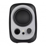 A 60 mm-es hangszóróegységek és a bass-reflex nyílás tiszta vokálokat és részleteket biztosítanak, miközben a hangszórók minimális helyet foglalnak az asztalon.
