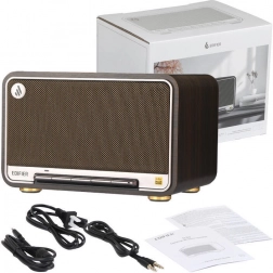Az EDIFIER D32 a retró dizájnt modern technológiával ötvözi. Két 1" magassugárzó és egy 4" közép‑mély hangszóró teljesen digitális jelfeldolgozással, aktív kétutas keresztváltóval és dinamikatartomány‑szabályzással biztosítja a tiszta, tágas és pontos hangképet. A kettős basszreflex csatornák testes basszust adnak, míg a masszív, 12 mm-es MDF ház minimalizálja a rezonanciát.