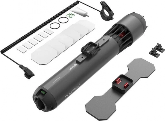 Subnado víz alatti robogó, ujjvezérlő, SUP tartó, 6× nano matrica, vezérlőkábelt rögzítő klipsz, öntapadó alátét, kenőanyag, 4× O-gyűrű 7,5×1, 2× O-gyűrű 26×2