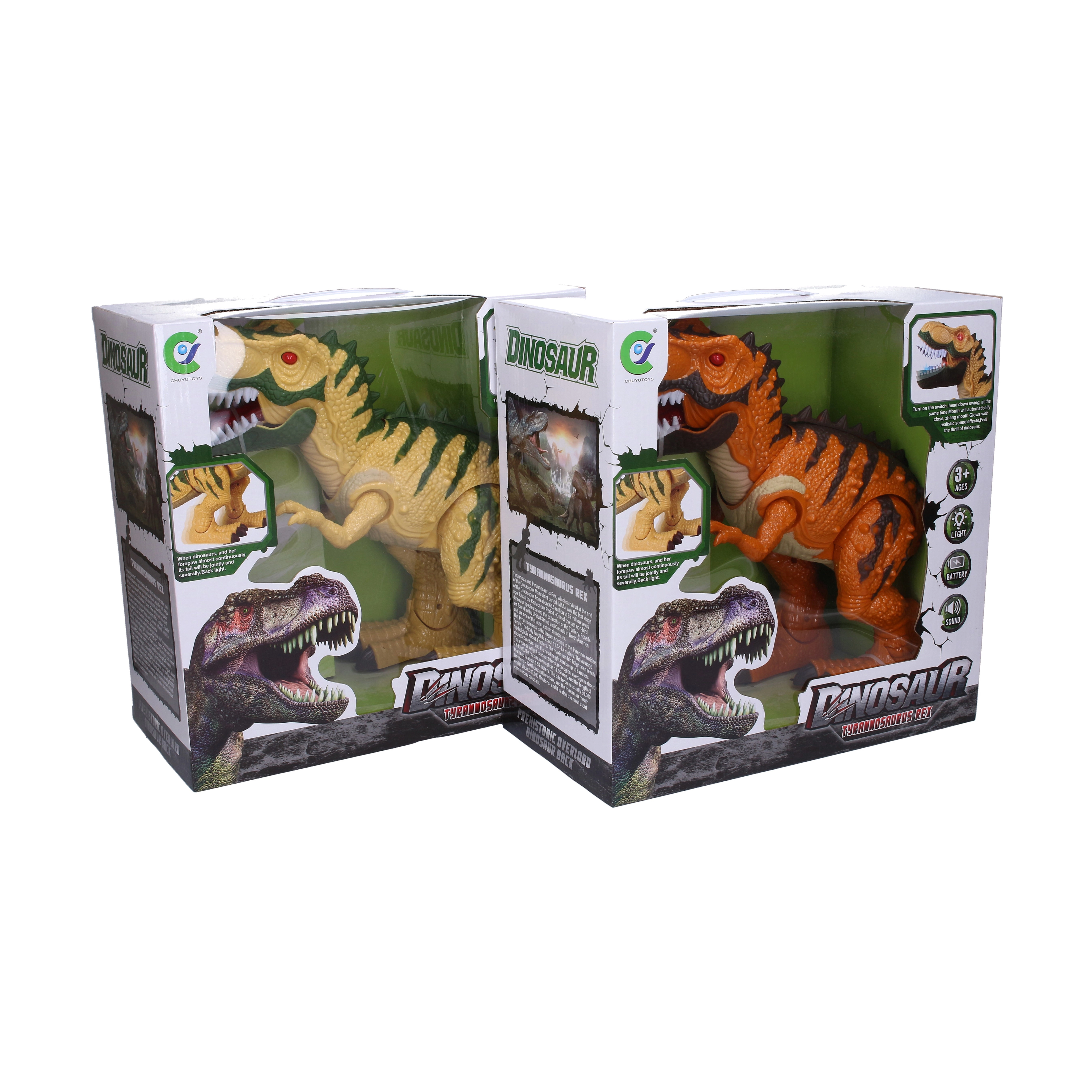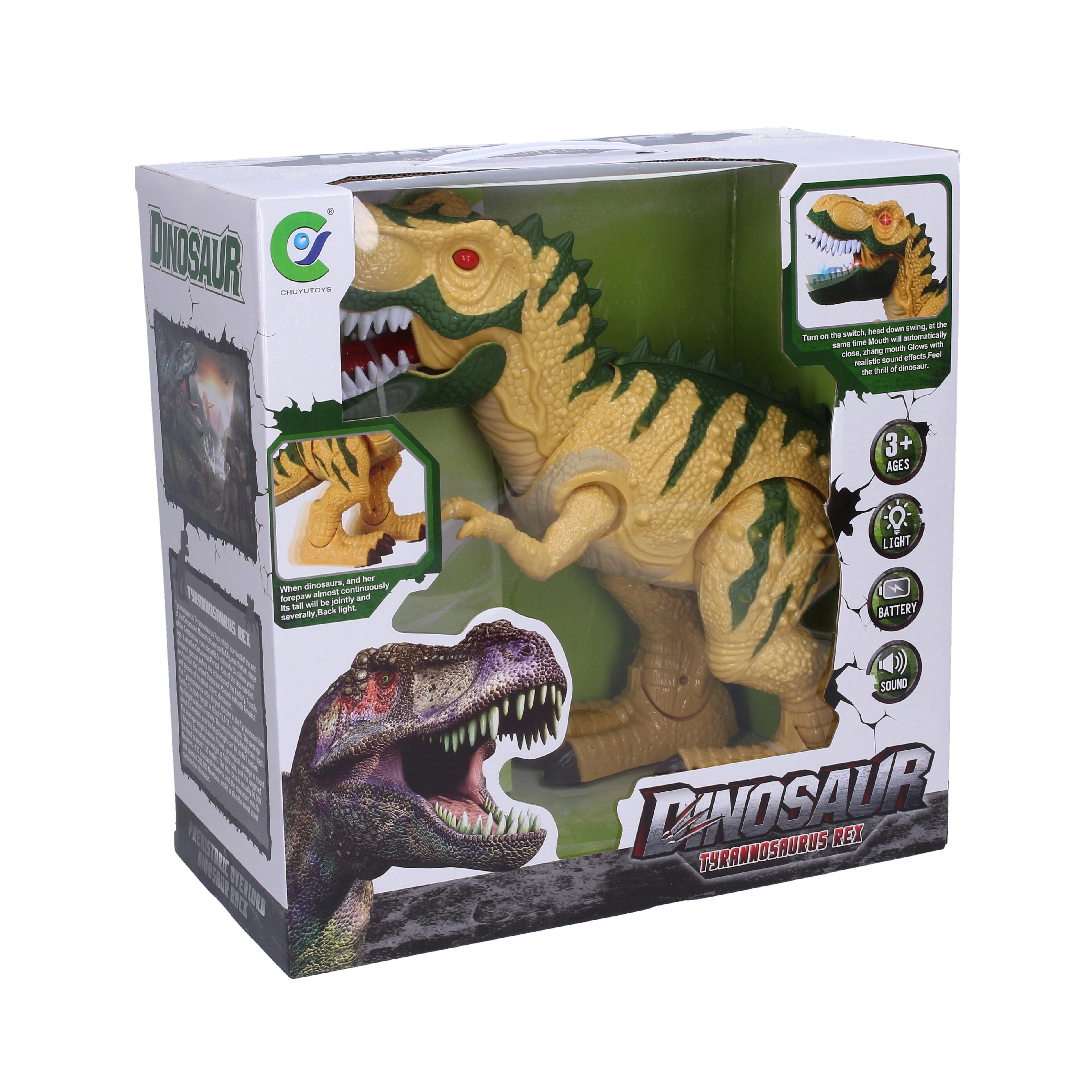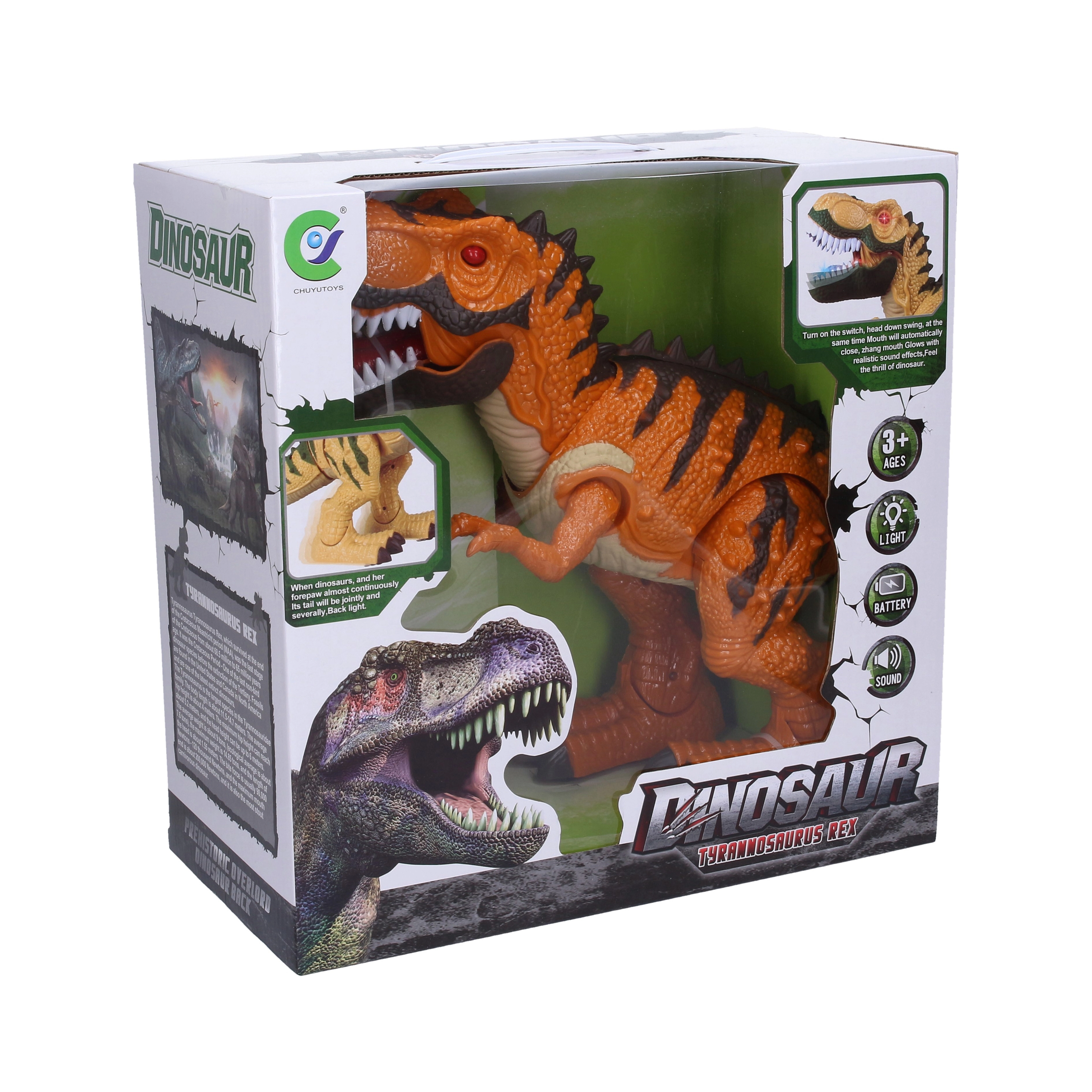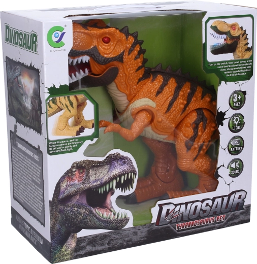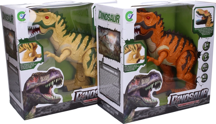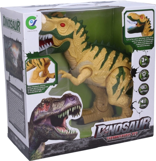 - Mozgás és effektek – a dinoszaurusz sétál, kinyitja a száját és hangokat ad ki.