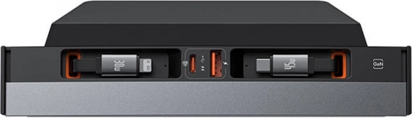 - Akár 4 eszköz töltése egyszerre: 2× kihúzható USB‑C kábel + USB‑C + USB‑A.