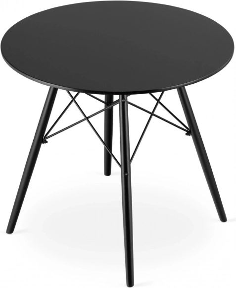 A modern, kerek asztal elegáns kiegészítő, amely remekül illik a nappaliba. A 80 cm átmérőjű lap és a tartós, fekete bükkfa lábak ideális választássá teszik azok számára, akik a funkcionalitás, az egyszerű forma és a strapabíróság kombinációját keresik.