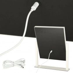 A minimalista, fehér dizájn és az ellenálló fémkeret stabil, csúszásmentes állvánnyal kényelmes használatot garantál még a dőlésszög állításakor is. A tükör ideális a mindennapi sminkhez, szépségápolási rutinokhoz, valamint a szemöldök vagy a bőr aprólékos igazításához.