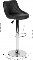 A 34x35 cm-es méretű, 60 cm-től 80 cm-ig állítható magasságú, robusztus fém szerkezetű és legfeljebb 120 kg teherbírású ez a bárszék a minőség garanciája.
