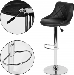 Ez a modern bárszék krómozott vázzal és fekete eco-bőr ülőkével kiváló választás minden belső térbe. Illik mind a modern, mind a klasszikus helyiségekbe.