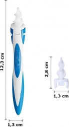 Praktikus és biztonságos fültisztító 16 cserélhető szilikonvéggel. A puha, rugalmas csúcs lehetővé teszi a kíméletes és hatékony tisztítást, valamint a fül szárítását fájdalom nélkül. Utazáshoz ideális az egész családnak.
