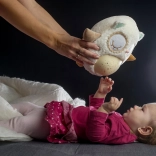 A könnyű kezelést a pocakon lévő gombok biztosítják, így sötétben is egyszerű a beállítás. Kompakt méretének köszönhetően a bagoly ideális a kiságyba és utazáshoz is. A puha, kellemes anyag ölelgetésre csábít, és segít kialakítani a nyugodt esti rutint.