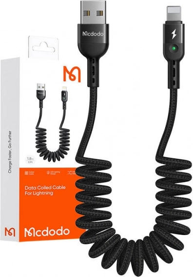 Univerzális rugós kábel Apple eszközökhöz. Ez a Mcdodo kábel gyors töltést és könnyű használatot kínál a rugós kialakításnak köszönhetően, amely megakadályozza a kábelt az összegabalyodásban.