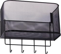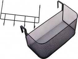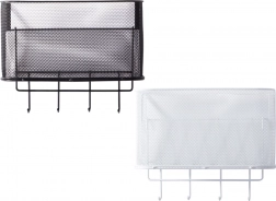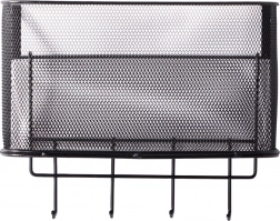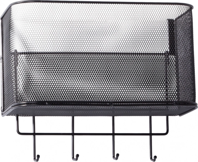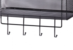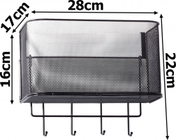 A fém függesztett kosár nemcsak praktikus, hanem stílusos is. Tágas, és lehetővé teszi különböző tárgyak tárolását, a konyhai kiegészítőktől a piperecikkekig. A 4 további kampó használható kulcsok, törölközők vagy táskák felakasztására.