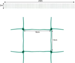 Ez a 2x20 méteres Gardlov futónövénytartó háló kiváló megoldást nyújt a kúszónövények mint például a paradicsom, uborka, borsó vagy szőlő esztétikus és hatékony növekedésének támogatásához. Ideális kerti eszköz, amely segíti a növények függőleges növekedését, javítva így a levegő áramlását, csökkentve a betegségek kockázatát, és megkönnyítve a termények betakarítását.