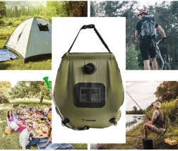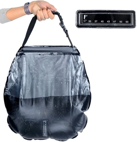 A 20 literes napelemes zuhany több percnyi kényelmes leöblítést biztosít sport után, tengeri fürdőzés vagy kempingezés közben. A víz tisztán napenergiával melegszik, a hőmérsékletet pedig könnyedén ellenőrizheti a beépített hőmérőn (°C/°F). Az átlátszó hátlap segít a vízmennyiség és tisztaság felügyeletében.
