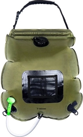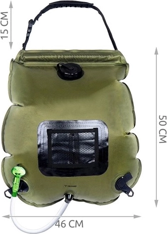 A masszív fogantyú, a csat és a rögzítési pontok révén a zuhanyt könnyen felakaszthatja ágra, kampóra vagy rúdra. A komplett készlet tartalmaz egy kb. 40 cm-es tömlőt és egy praktikus zuhanyfejet az egyenletes vízsugárhoz. Az anyagok PVC, poliészter és tartós műanyagok (ABS, POM, PET, nejlon) a hosszú élettartamért.