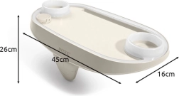 Maximális praktikusságra és biztonságra tervezve: 2 italtartó tartja a poharakat, csészéket és palackokat felborulás veszélye nélkül, míg a felület táblagép vagy okostelefon számára lehetővé teszi a kedvenc tartalmak kényelmes követését. A tápellátást 2 db CR2032 elem (a csomag tartalmazza) biztosítja, így nincs szükség kábelekre vagy szerelésre.