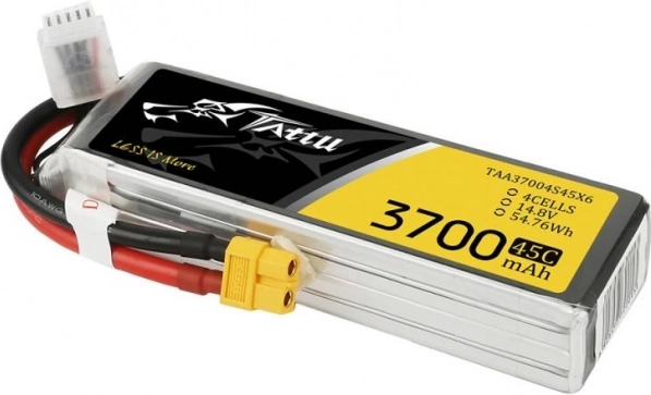 A TATTU 3700 mAh 4S LiPo akkumulátor azoknak a pilótáknak és modellezőknek készült, akik megbízható teljesítményt, hosszú üzemidőt és alacsony belső ellenállást igényelnek. A 14,8 V és 45C kombinációja nagy terhelés mellett is elegendő tolóerőt ad a modellnek.