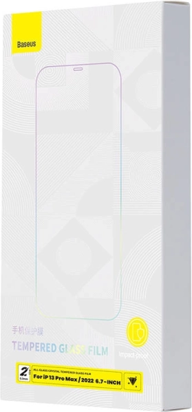 A prémium BASEUS edzett üveg teljes felületén védi iPhone 14 Plus / 13 Pro Max készüléke kijelzőjét. Magas karcállóságot, 0,3 mm-es vékony kialakítást, ujjlenyomat-mentes bevonatot és kékfény-szűrőt kínál. A csomagban 2 darab található a hosszan tartó védelemhez és a könnyű cseréhez.