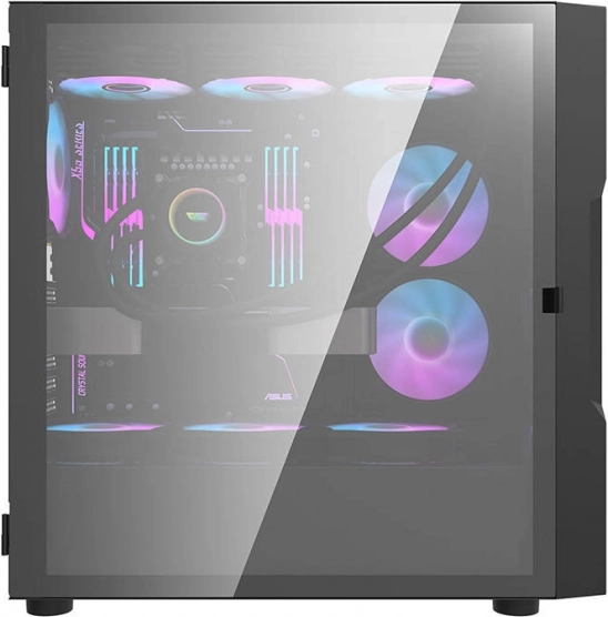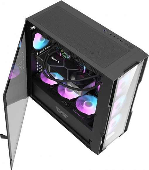 Számítógépház Darkflash DK431 Glass lehetővé teszi, hogy vonzó és funkcionális számítógép-összeállítást hozzon létre. A nyitott panelek, beleértve az oldalakat edzett üvegből, feltárják a belső komponenseket, míg a beépített RGB ventilátorok optimális hűtést biztosítanak.