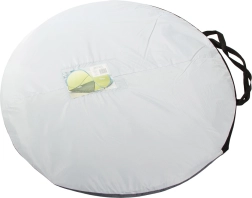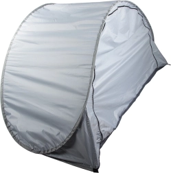 Az önfelálló strandsátor elegáns szürke színben kellemes árnyékot és magánszférát biztosít a forró napokon. Az okos mechanizmusnak köszönhetően szinte azonnal feláll, így több idő jut a pihenésre. A UV-védelemmel ellátott anyag segít csökkenteni a napsugárzás hatását, míg az aerodinamikus forma jobban ellenáll a szélnek.