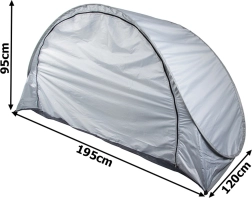 A sátor könnyű, egyszerűen hordozható, és összehajtva minimális helyet foglal. A zárható kivitel és a cövekekkel történő rögzíthetőség növeli a stabilitást és a komfortot. A 195 × 120 × 95 cm-es méret ideális 1–2 személy számára, legyen szó strandról, kertről, kempingezésről vagy gyereksarokként való használatról.