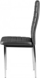 A szürke ökobőr kárpit és a krómozott lábak elegáns kombinációt alkotnak, amely illik a modern étkezőhöz, konyhához és közösségi terekhez is.