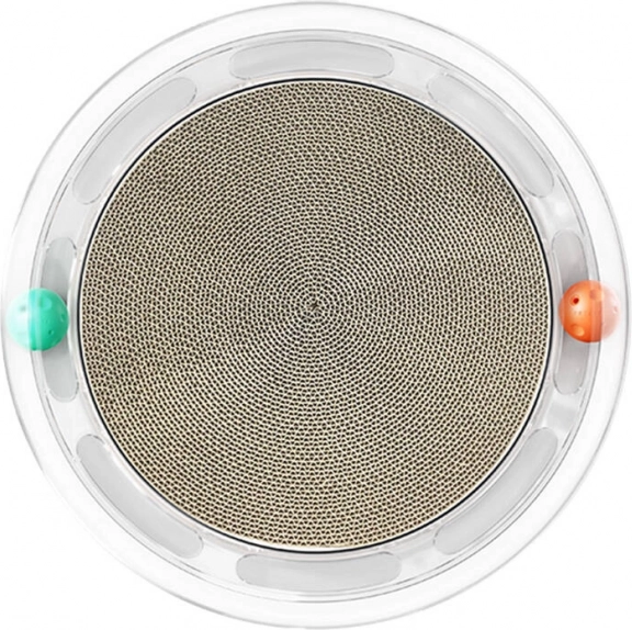 A PETKIT kaparó egy okos mini játszótér macskáknak, amely a természetes kaparást interaktív játékkal ötvözi. A perem menti pálya két színes golyót rejt – a csengős narancssárga felébreszti a vadászösztönt, míg a macskamentás zöld további játékra késztet. A középen lévő minőségi hullámkarton kényelmes kaparó- és pihenőhely.