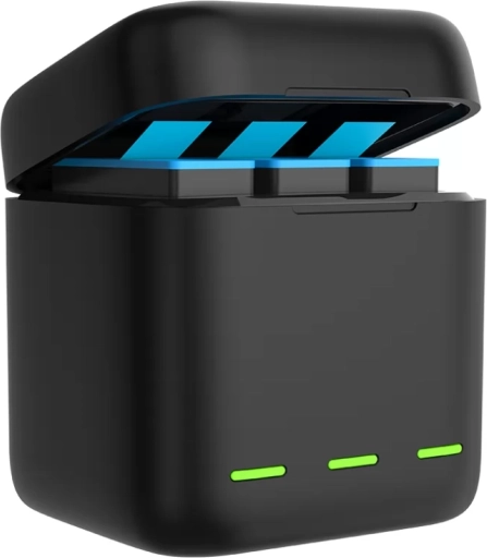 A kompakt, 3 férőhelyes Telesin töltő tokja akár három GoPro HERO 12/11/10/9 akkut is gyorsan és biztonságosan tölt egyszerre. 2,4 A gyors töltést, áttekinthető LED jelzőket, USB‑C csatlakozást és komplex védelmet kínál túlfeszültség, túlterhelés és túlmelegedés ellen. A könnyű kivitel mágneses fedéllel és szilikon rekesszel 2 microSD kártyához ideális utazáshoz.