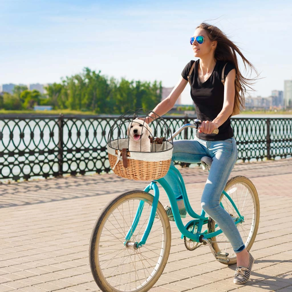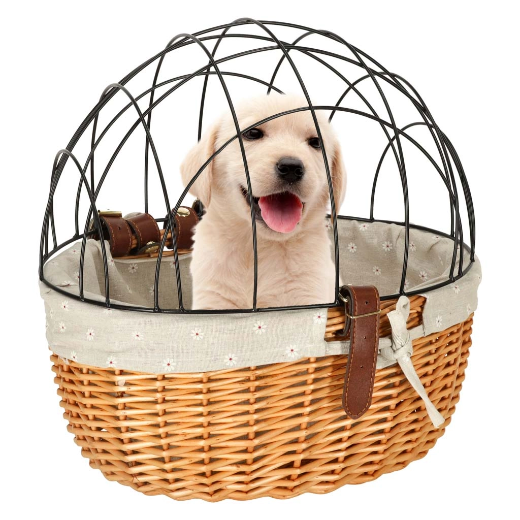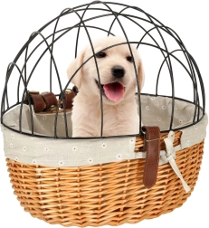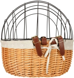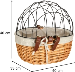 Ezzel a stílusos és praktikus wiklinából készült kerékpárkosárral biztonságos és kényelmes módon szállíthatja kisállatát biciklire rögzítve.