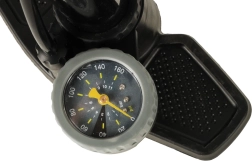 A beépített, jól olvasható manométer lehetővé teszi az abroncsok megfelelő nyomásra történő felfújását, javítva a menettulajdonságokat és az abroncsok élettartamát.