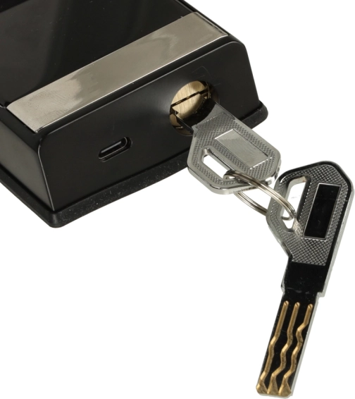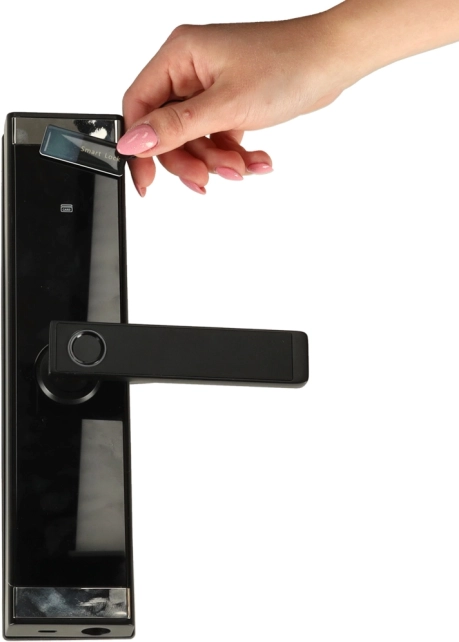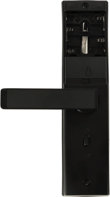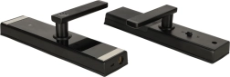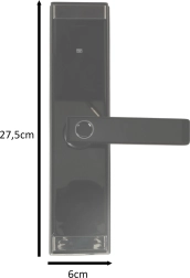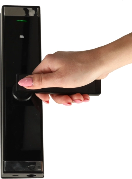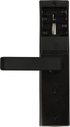 A robusztus alumínium ház matt fekete színben illik a modern enteriőrökhöz. A zár balos és jobbos ajtókhoz, 3,5–5 cm vastagságig alkalmas, és gyorsan szerelhető. Lemerült elemek esetén mindig használható a mechanikus kulcs.