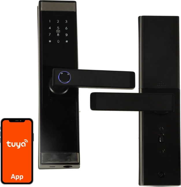 - Érintőbillentyűzet, ujjlenyomat-olvasó, RFID, mechanikus kulcs, Tuya alkalmazás