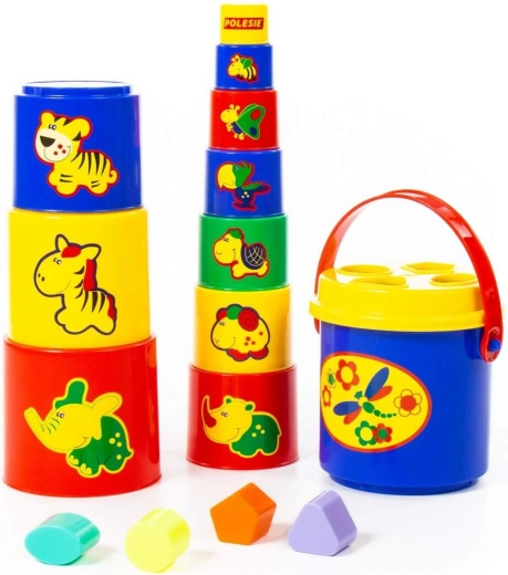 Ez a játék remek társa a legkisebbeknek, és játékosan, képek segítségével új állatokkal, színekkel és formákkal ismerteti meg őket. Ráadásként a piramis a játék végeztével könnyen elpakolható a mellékelt vödörbe.