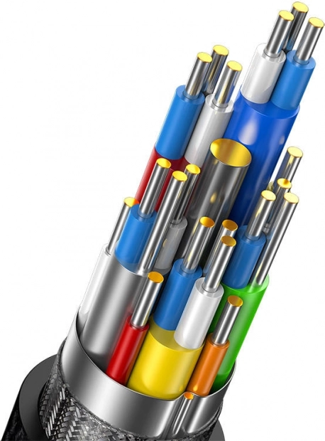 Prémium kivitel sűrű szövésű borítással, többrétegű árnyékolással és megerősített csatlakozókkal a hosszú élettartamért még gyakori csatlakoztatás mellett is. A zavarmentes, stabil átvitel és a kényelmes 2 m hossz ideális otthoni irodához, munkához és játékhoz.