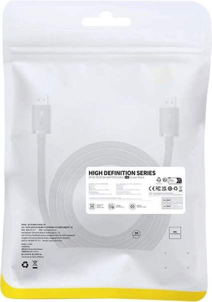A BASEUS High Definition DisplayPort–DisplayPort kábel 32 Gb/s sávszélességet biztosít a kristálytiszta képhez 8K/60 Hz, 4K/120–144 Hz és akár 2K/240 Hz mellett. A HDR és a 12 bites színmélység mélyebb kontrasztot, precíz árnyalást és akár 68,6 milliárd színt nyújt a valóban élethű megjelenítéshez.