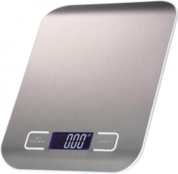 Az önálló mérleg ipari fém stílushoz igazodik ezüstös felülettel. Nagy előnye a tágas, 18 centiméteres felület, ami mindössze 1,5 centiméter vastag, így a mérleg praktikus a kevésbé tágas konyhákban is. Két AAA elemmel működik, és egyszerűen kezelhető a kijelző melletti két gombbal.
