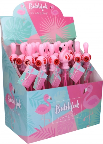 Flamingó buborékfújó síppal. Készítsen buborékokat és élvezze a hangokat a 2 az 1-ben designnak köszönhetően! 3 éves kortól.