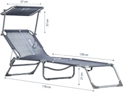 A masszív, porszórt acél váz stabilitást és hosszú élettartamot garantál. A strapabíró textil időjárás- és kopásálló, könnyen tisztítható. Az összecsukható konstrukció és a praktikus hordozó fogantyú megkönnyíti a szállítást és a tárolást otthon, a medencénél vagy nyaraláskor.