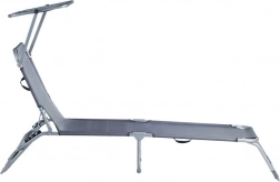 Az elegáns, szürke MultiGarden napozóágy egész napos pihenésre készült napon és árnyékban egyaránt. A három pozícióban állítható háttámla lehetővé teszi az ideális szög beállítását olvasáshoz, napozáshoz vagy alváshoz, míg az állítható napellenző megvéd a közvetlen napsugaraktól.