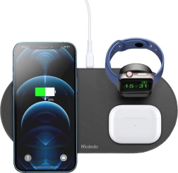 Vége a kábeldzsungelnek. Az elegáns MCDODO 3 az 1-ben vezeték nélküli állomás egy helyre összpontosítja a telefon, az óra és a fülhallgató töltését. Támogatja a MagSafe-et iPhone-hoz, és visszafelé kompatibilis a 10 W / 7,5 W / 5 W szabványokkal, így gyors és megbízható energiavisszatöltést nyújt számos eszközhöz, beleértve egyes Android telefonokat is.