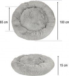 Puha, kerek, fészekhatású fekhely kutyáknak és macskáknak világosszürke színben a maximális kényelemért és biztonságérzetért. A plüss anyagnak, a megemelt peremnek, amely megtámasztja a fejet és a nyakat, valamint a csúszásgátló alsó résznek köszönhetően ideális pihenéshez és zavartalan alváshoz.