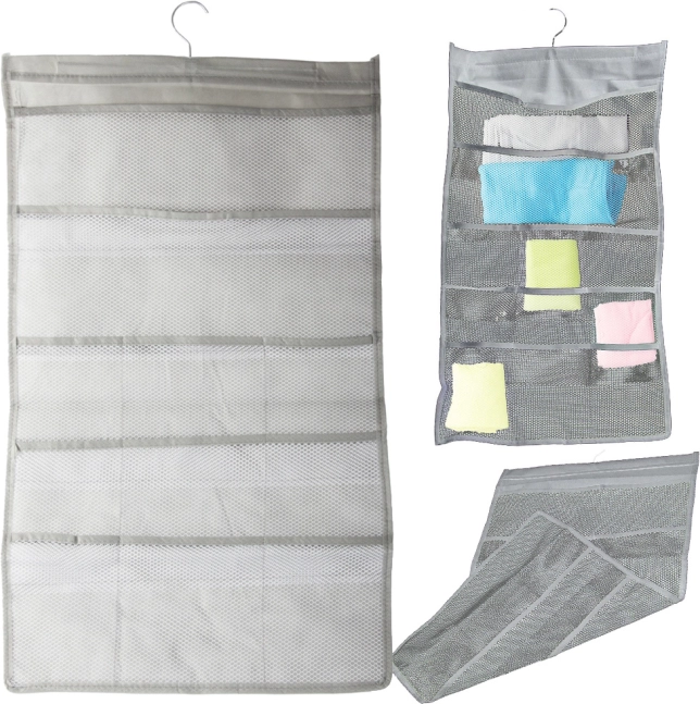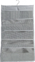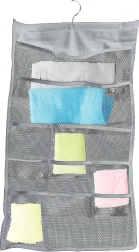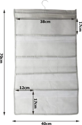 A függő fehérnemű szervező ideális megoldás a rend fenntartására a gardróbban. 22 zsebbel, amelyek 4 nagy zsebre oszlanak a melltartókhoz és 18 kisebb zsebre a zoknikhoz, harisnyákhoz vagy kis kiegészítőkhöz, ez a szervező a rendezett tárolás biztosítéka.