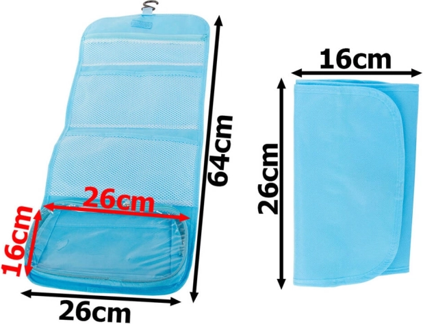 Elegáns és praktikus pipere táska, amely lehetővé teszi a gyors hozzáférést a kozmetikai termékekhez. Férfiak és nők számára is kiváló, és könnyen felakasztható a fürdőszobában a akasztónak köszönhetően.