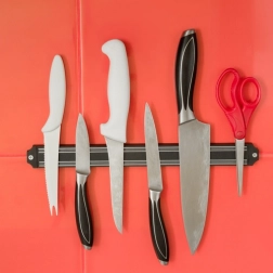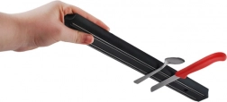 Ez a 32,5 cm hosszú mágneses léc megbízható megoldás a fém tárgyak biztonságos és átlátható tárolására. A erős, kettős magos mágnes garantálja, hogy kések, ollók, kanalak vagy szerszámok stabilan rögzítve maradjanak, lecsúszás nélkül. Letisztult, egyszerű kialakítása bármely enteriőrbe illik.