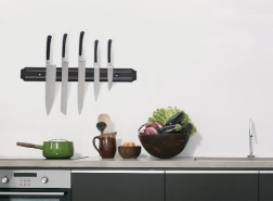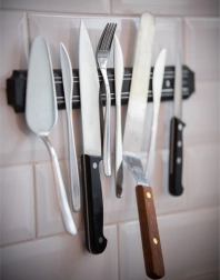 Egy léc – rengeteg lehetőség. Elbírja a konyhakéseket, habverőket, ollókat és a műhely szerszámait is. Rendszer és áttekinthetőség kis helyen.