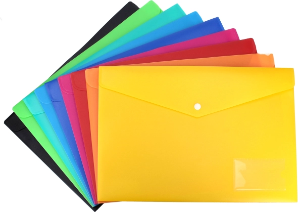 Ez a mappa puha műanyagból készült, ami biztosítja a könnyű tisztíthatóságot és a hosszú élettartamot. A praktikus patentos zár biztonságban tartja az összes dokumentumot, megakadályozva azok elvesztését.