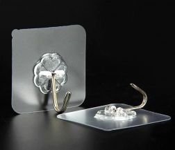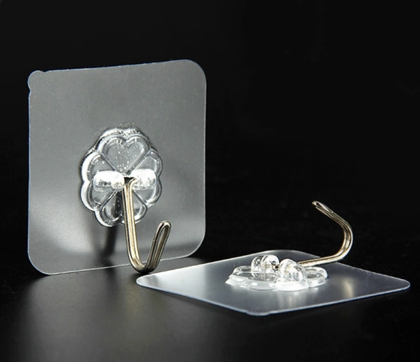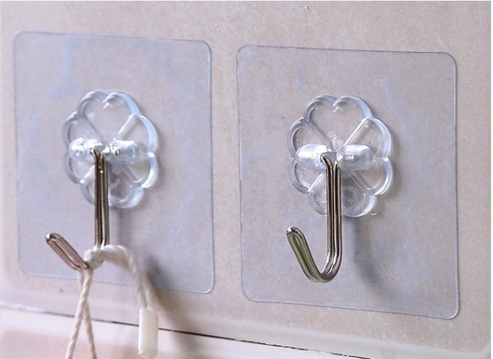 Vízálló akasztó kampók. Az esztétikus, átlátszó kivitel diszkrét dekorációfelakasztást tesz lehetővé. Kiválóan alkalmas zuhanyzóba is, illetve kulcsok és egyéb tárgyak felakasztására. Tisztított felületre ragassza fel, és várjon 24 órát, mielőtt bármit a kampóra akaszt. A ragasztó nagyon erős, nem ajánlott festett falra felragasztani – eltávolításkor a festék leválhat. Többször is felhasználható.